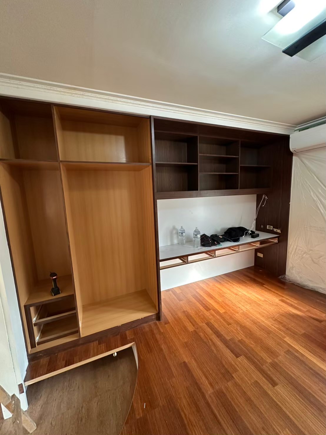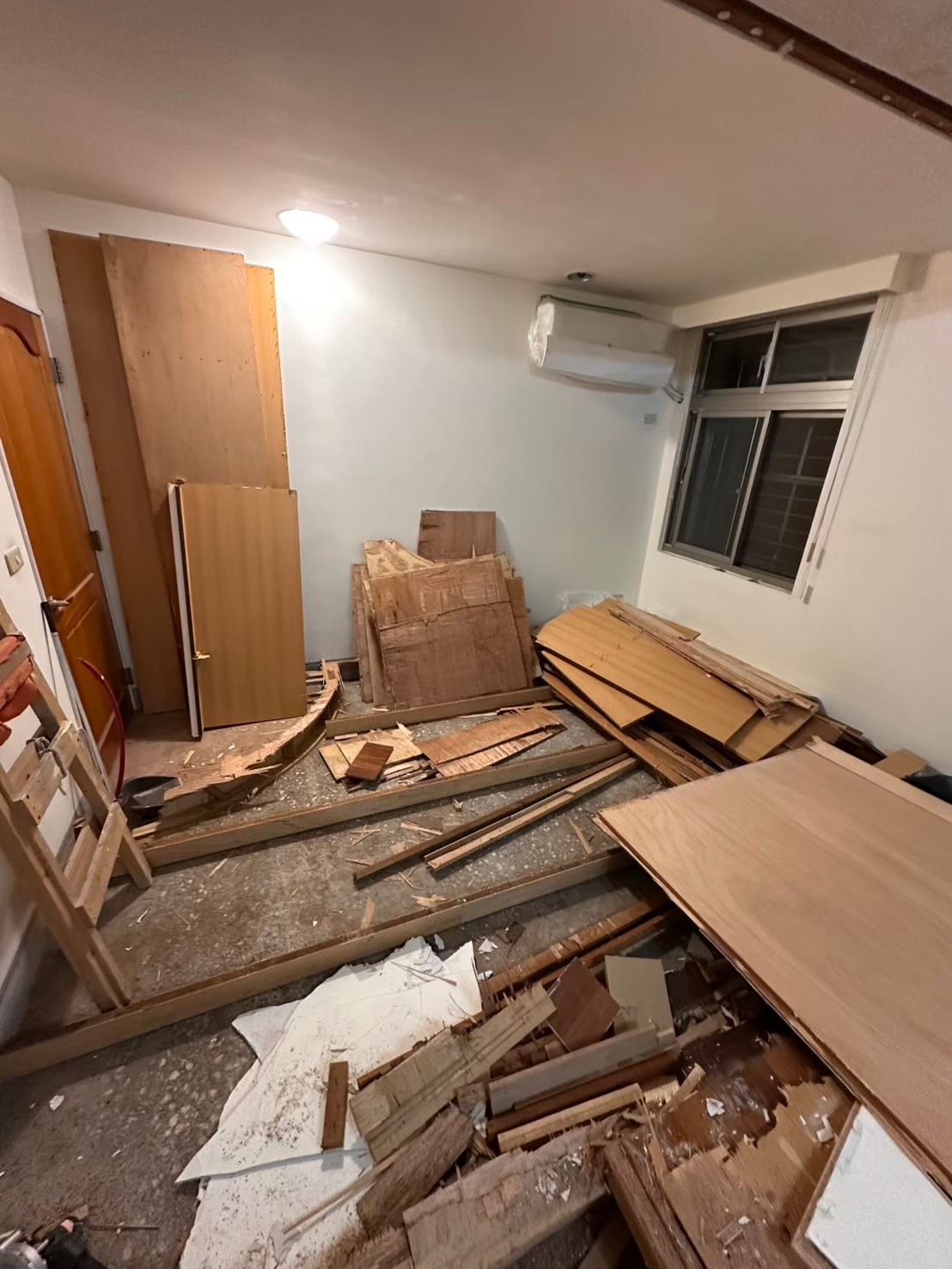 為確保異味源完全去除,我們進行了全面的拆除工作,包括舊有的木作隔間牆和相關櫃體。拆除過程中特別注意防塵與環境保護,減少對居住空間的影響。所有廢棄物均依環保規範處理,為後續的重建工程做好準備。