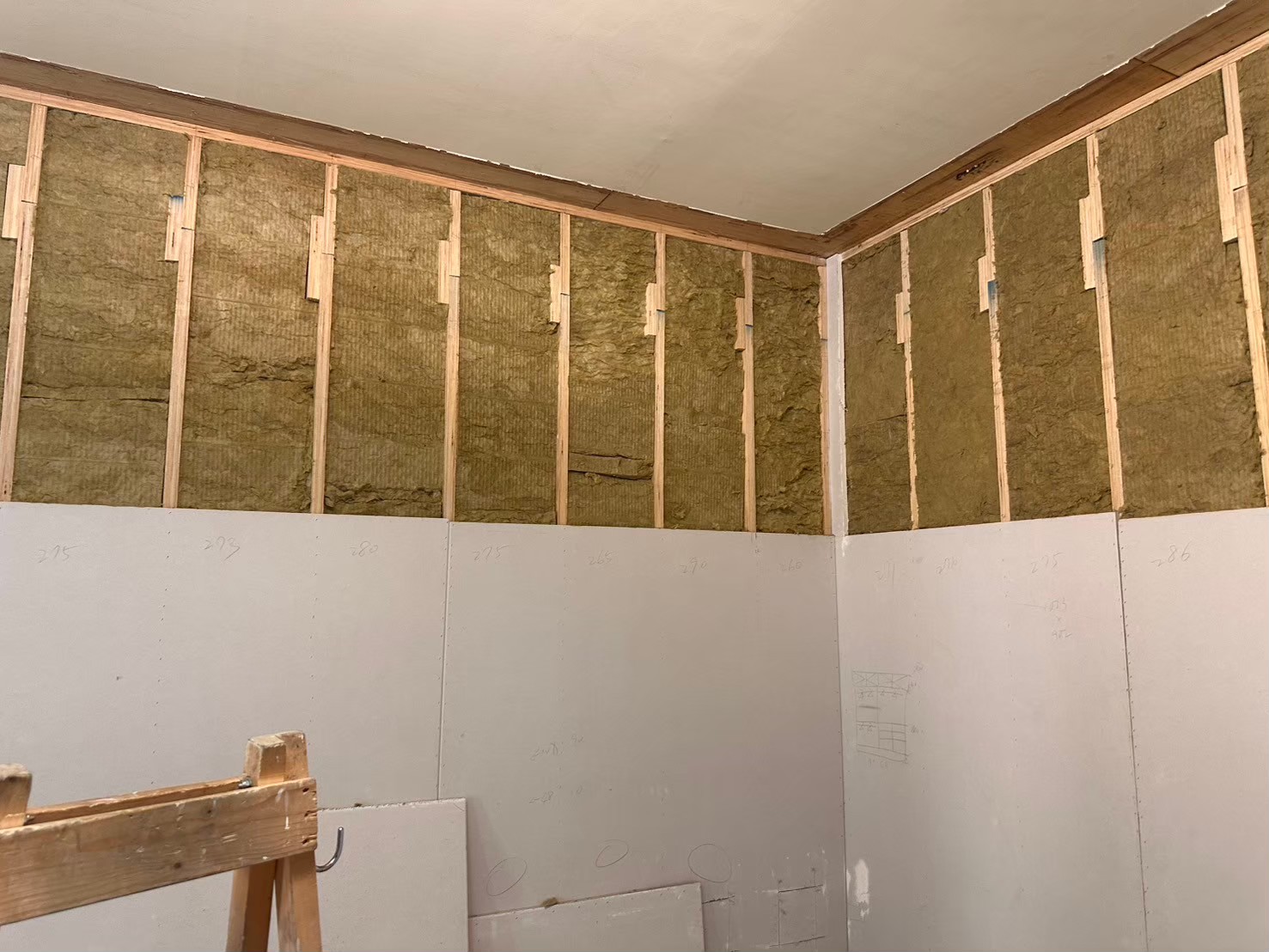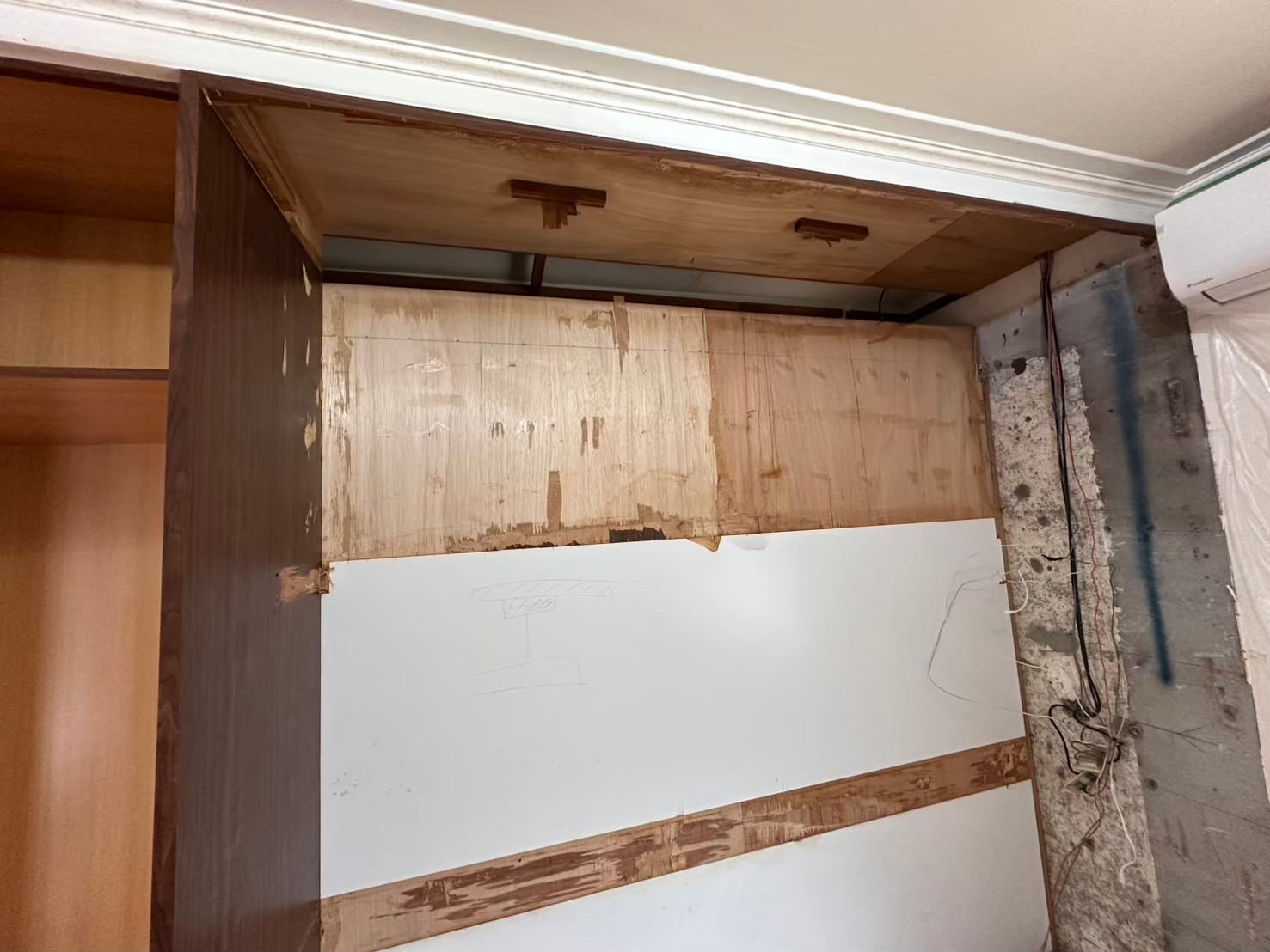 原始有異味問題的木作隔間牆正面視圖