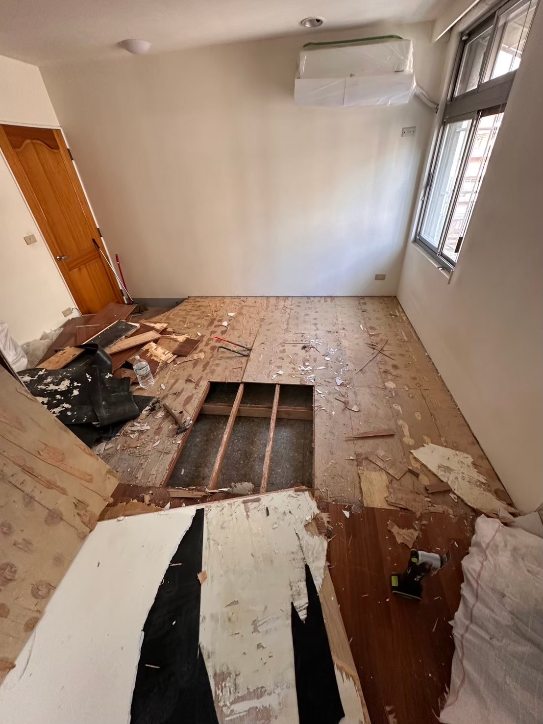拆除工作進行中,去除所有可能存有異味的材料