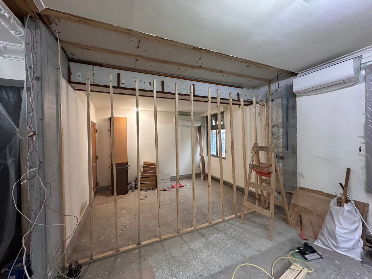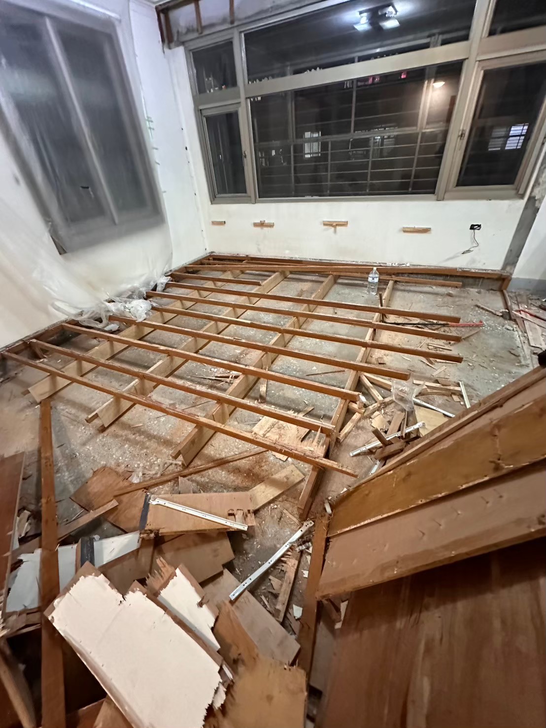 拆除過程中的隔間牆結構