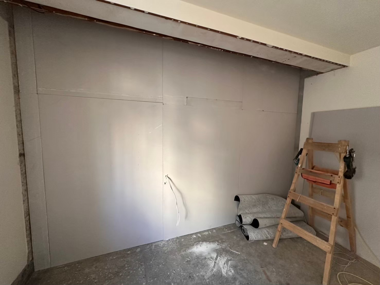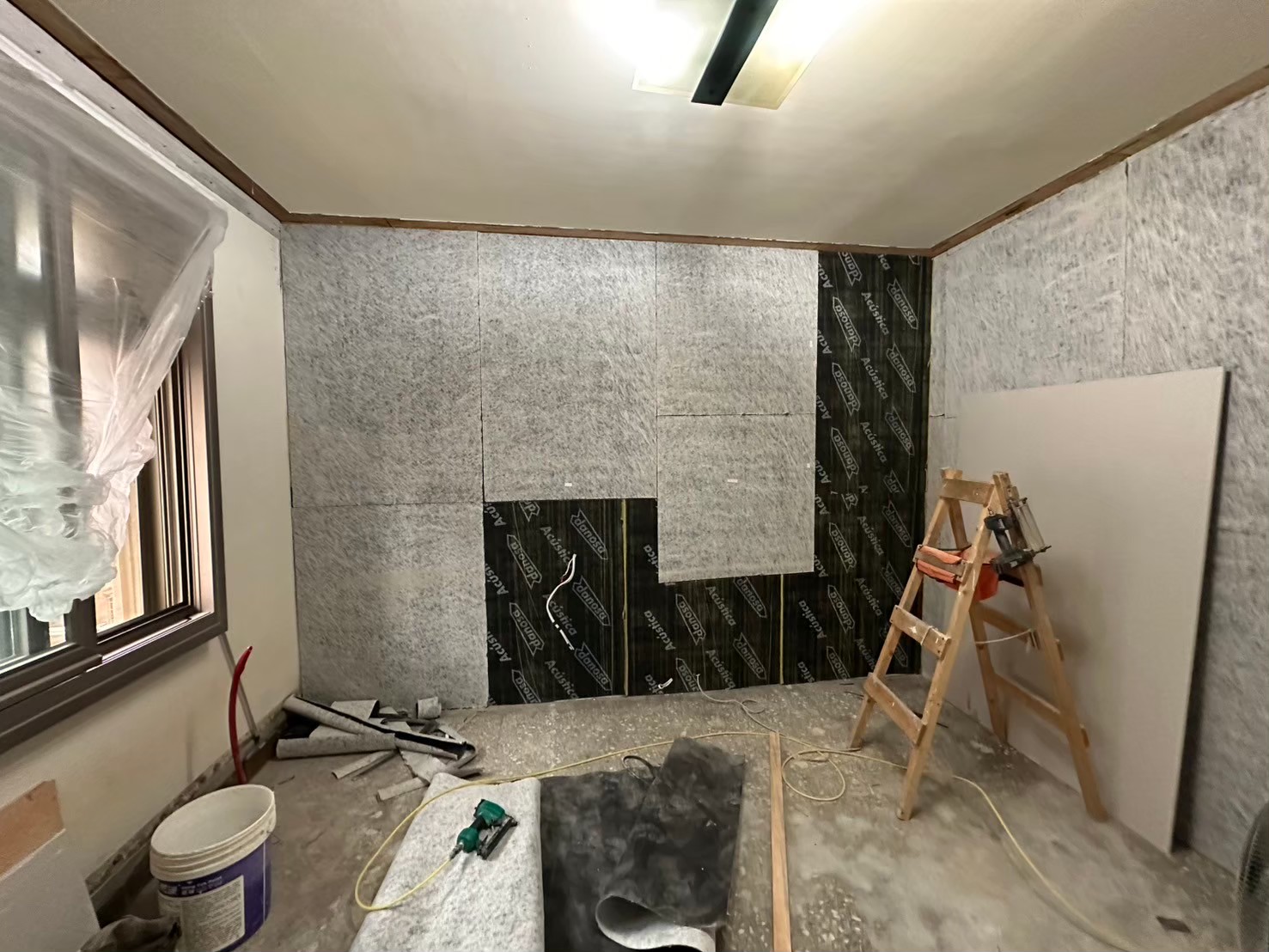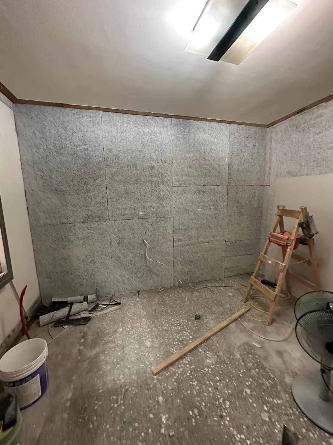 隔音材料完成後,我們使用高品質板材進行封板處理,確保表面平整美觀。所有接縫處都經過精細處理,為後續的油漆工程做好準備。我們注重每一個細節,確保成品符合客戶的期望與專業的施工標準。