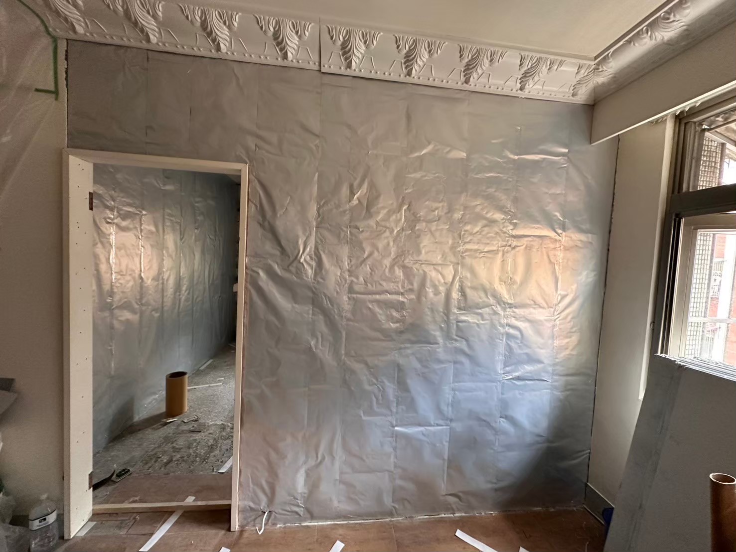 隔音材料覆蓋施工中
