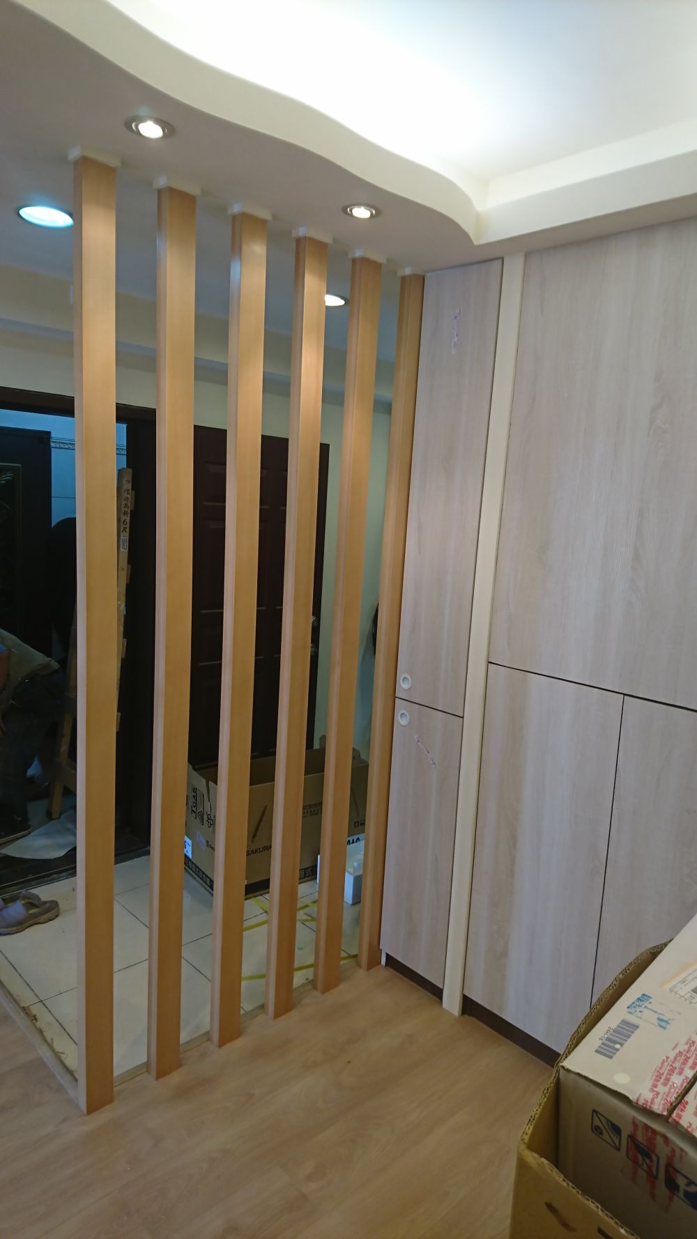 經過精心施工,格柵工程順利完成。成品呈現出優雅的線條與穩固的結構,既達到了阻隔入門視線的功能需求,又與整體室內環境相協調。格柵的設計既現代又實用,成功地解決了客戶的風水顧慮,同時還為空間增添了一處精美的裝飾亮點。