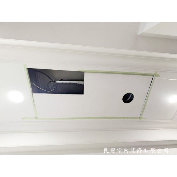 本次施工客戶未要求進行油漆粉刷處理。我們建議在條件允許的情況下,可考慮增加油漆工程的修補、批土、研磨和粉刷等後續處理,這將使維修孔與天花板更加融為一體,達到最佳美觀效果。民豐室內裝修隨時為您提供專業建議與後續服務支援。